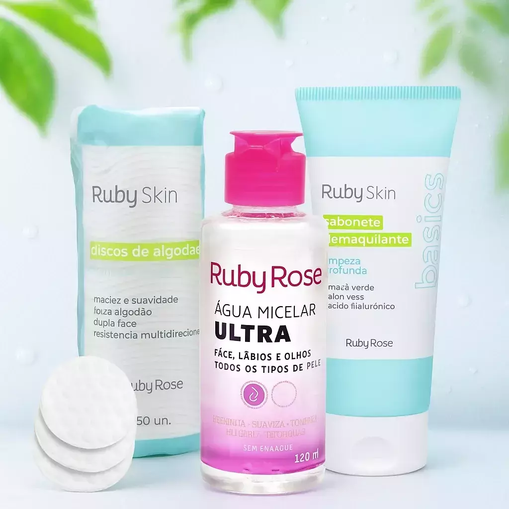 1 Água Micelar Ultra Ruby Rose (120ml): Com ação 5 em 1: limpa, demaquila, hidrata, tonifica e suaviza a pele.
